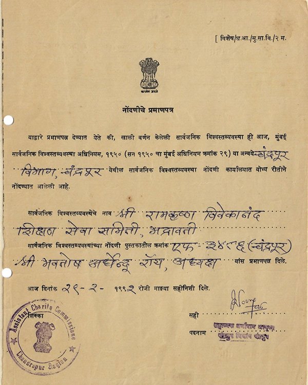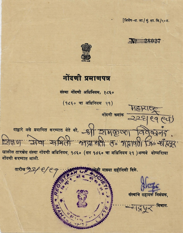 Sri Ramakrishna Vivekananda Sevashram, Netaji Colony, Bhadrawati-442901, Dist: Chandrapur provides opportunities for the public to cooperate with this charitable organization in carrying out various types of works chalked out by Swami Vivekananda for serving the humanity. This cooperation may consist in active participation in the activities of the Ashram, or in the contribution to the different Funds of the Ashram. Admirers and devotees, who are in sympathy with the objects of the Ashram but are unable to take part in our activities, are cordially invited to help us by contributing to one or more of the Funds, which need their active support.