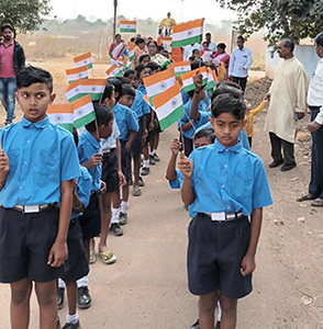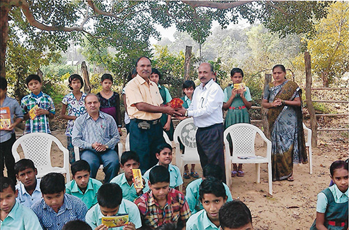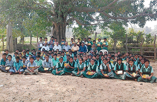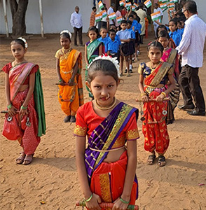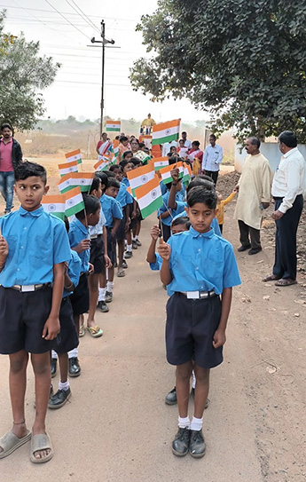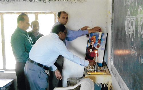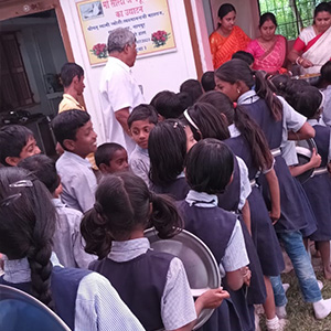 जयंती उत्सव मे ग्रहण करते हुए स्कूल के छात्र-छात्राए।