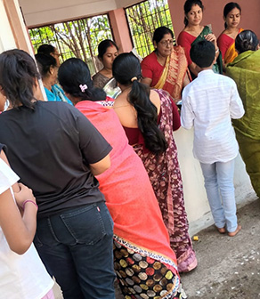 मासिक अर्धदिवसीय आध्यात्मिक शिबिर मे भक्तो ने प्रसाद लेते हुए।