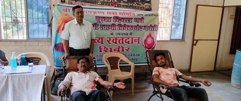 Blood Donation Camp at Ramkrishna Mandir Krishna Nagar, Chandrapur -2 on the Occasion of National Youth day on Date :- 12/01/2024.